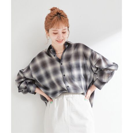 手洗い可 / シアーボイルチェックオーバーシャツ