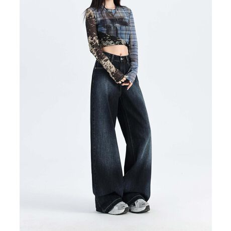 ヴィンテージ加工が施されたトレンド感溢れるワイドストレートデニムパンツ。