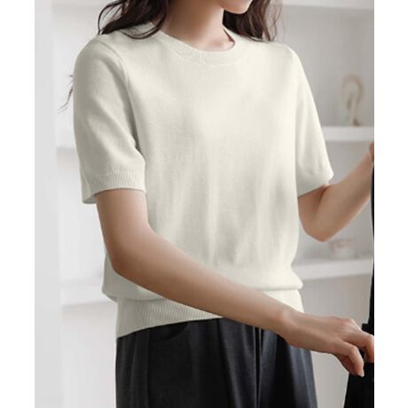 シンプルでありながら上品な雰囲気を演出するサマーニット。