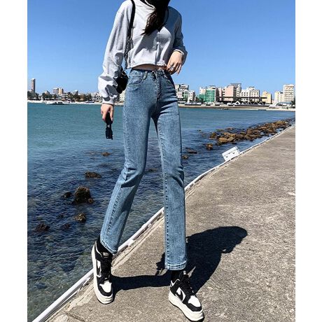 スタイリッシュなデザインで、女性らしい魅力を際立たせるデニムパンツ。ハイウエストデザインが脚のラインを長く見せ、スタイルアップ効果抜群◎