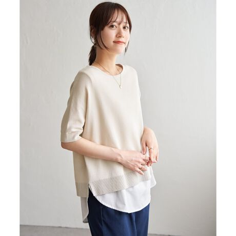 シンプルなデザインのドルマンニットに、タンクトップインナーがセットになったアンサンブル。