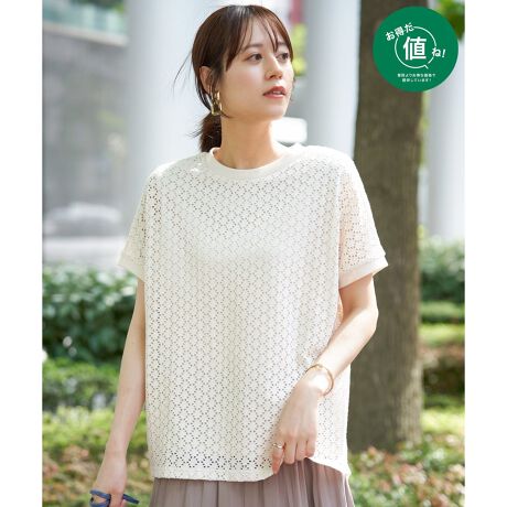 レースのような柄の見え感で高見えする、アイレットカットワーク素材を使用しました。