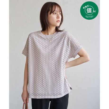 レースのような柄の見え感で高見えする、アイレットカットワーク素材を使用しました。