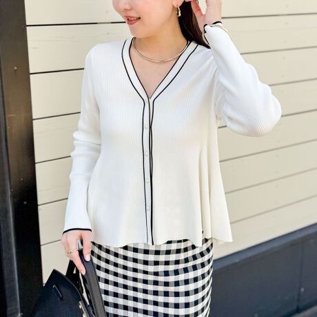 【追加】《手洗い可能》マルチファンクションリブフレアVネックカーディガン