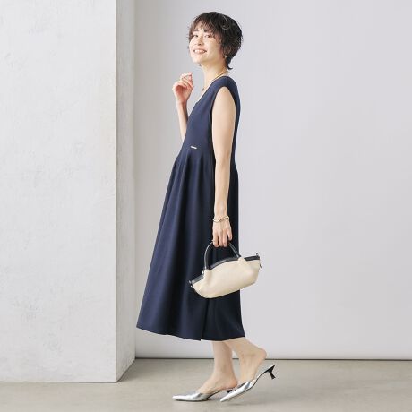 ・深めのV開きとスカートのふくらみのバランスが甘辛ミックスで着やすい1枚