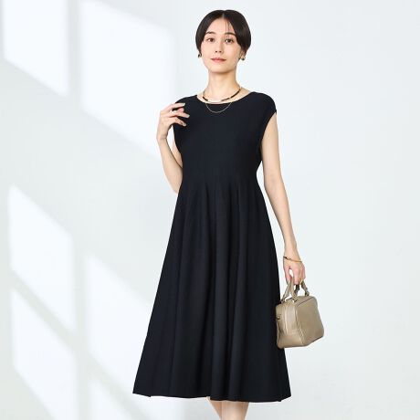 ・深めのV開きとスカートのふくらみのバランスが甘辛ミックスで着やすい1枚