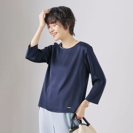 ・上品な光沢感のあるポリエステルサテンを使用したTブラウス