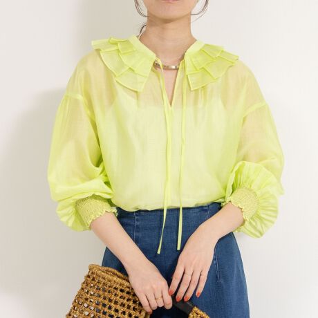 ラッフル衿シアーブラウス