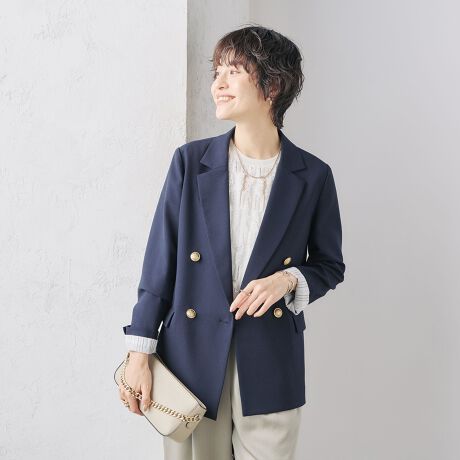 《セットアップ対応》ウォッシャブル高機能麻調ダブルジャケット