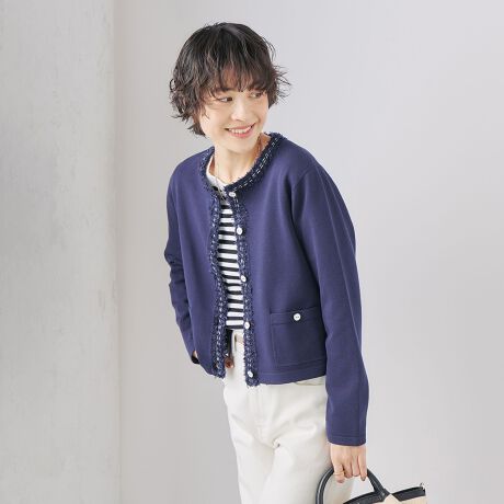 《手洗い可能》フワシャギーステッチニットジャケット