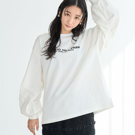 袖にボリュームを持たせて、ガーリーな空気感を備えた長袖Tシャツ。