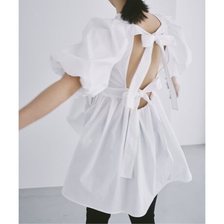 やや張り感のある生地なので、立体的なパフスリーブやウエストからのギャザーシルエットを綺麗に見せてくれます。