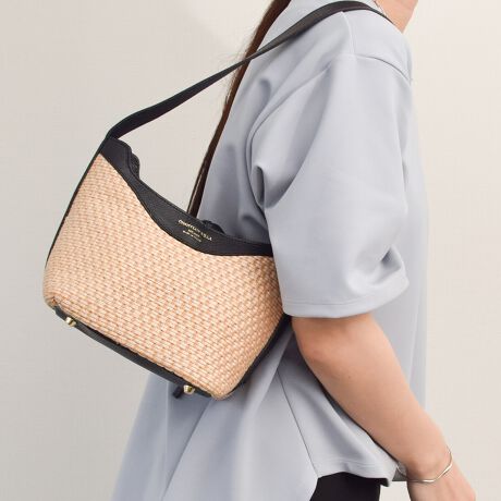ラフィアとレザーのコンビネーションが春夏らしい印象のショルダーバッグです。