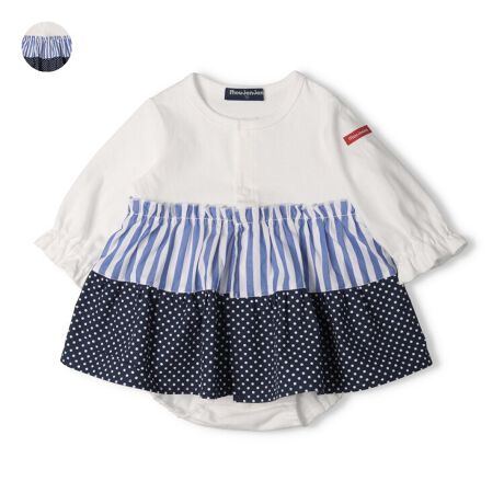 ストライプ・ドット柄スカート長袖ロンパース