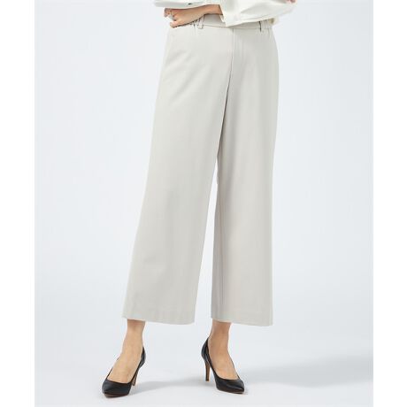 穿きこなしやすい、ほどよいワイドシルエットのパンツ。腰回りはタイトに仕上げたことですっきりとした印象にまとまっています。ウエストはサイドからバックにかけてゴムを入れており、フィット感のよさも魅力です。
