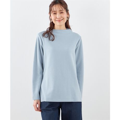 後ろ身ごろの裾を布帛で切り替え、コーデに差が付く遊び心のあふれるデザインに仕上げました。裾広がりのラインで気になるお腹まわりもカバー、ジャカード素材ならではのきちんと感でカジュアルにならないのもポイントです。