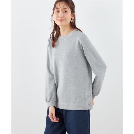 肌にさらっと心地よいほど良い厚地のリブ素材、控えめな衿開きのハイネックでロングシーズンお使いいただけます。裾のボタンを開けることで抜け感をプラスしたりインナーをチラ見せしたり、着こなしの幅も広がるデザインです。