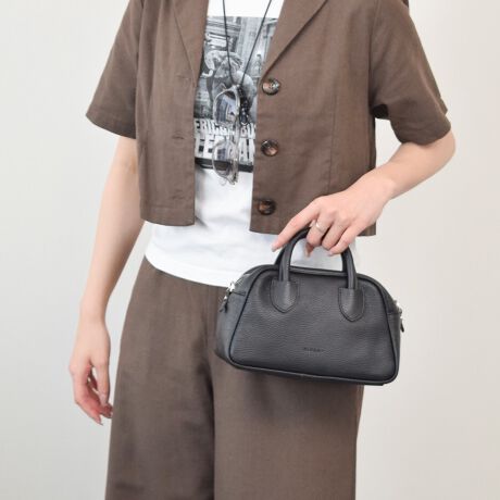 小ぶりなサイズ感とフォルムがかわいいミニボストンバッグは、シュリンクレザーのソフトな質感が特徴的です。