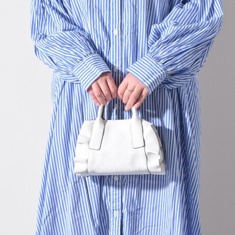 小ぶりなサイズ感とフォルムがかわいいミニハンドバッグは、フリルデザインがフェミニンな印象です。