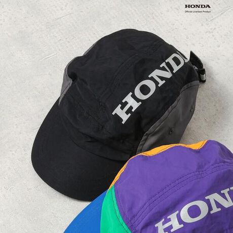 【Honda】Hondaコラボデザインのアイテムが登場!ブラックとクレイジーカラーの2色展開◎ツバが広く、被りが浅いのが特徴のジェットキャップは、シンプルですっきりとしたシルエット◎オールシーズン使えるキャップはお気に入りのデザインで!車好きキッズにおすすめのアイテムです◎