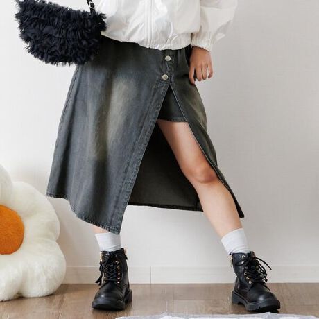 ALGY(アルジー)のスカート「デニムロングラップスカート」は、流行に敏感な女のコの日常を可愛く、甘く彩るデザインが人気!