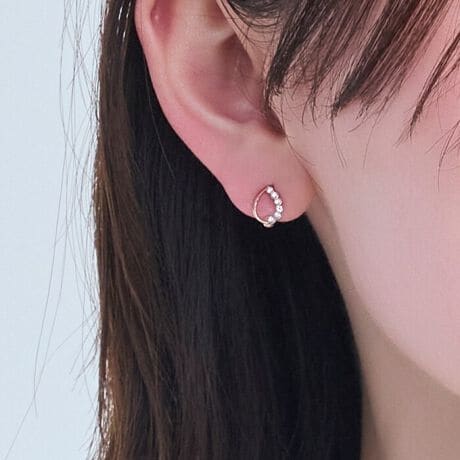 イヤリング金具を最小限に軽量化したことで、ストレスフリーな着け心地とピアスのようなルックスを実現♪