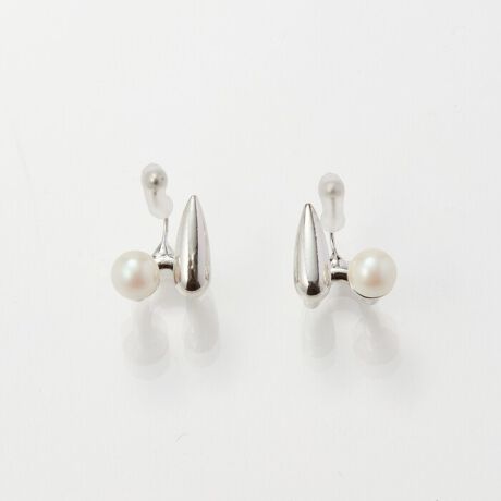 【痛くないシリーズ金属アレルギー対応】ダブルメタルパールフロートライトフィットイヤリング シルバー