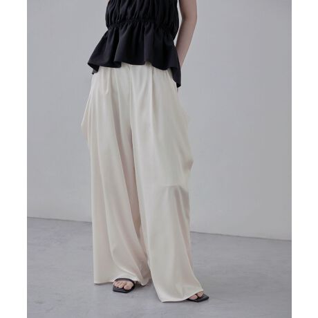 etoll. エトル ゆれ感+ツヤをそなえたマットサテン生地のワイドパンツ。
