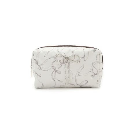 SNIDEL HOMEオリジナルのしなやかなリボン柄をプリントしたポーチに、きらめくリボンビジューをあしらいました。