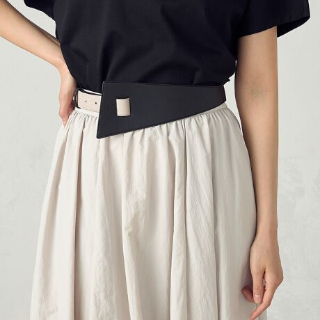 配色と変形帯がポイントのバイカラーベルトです。