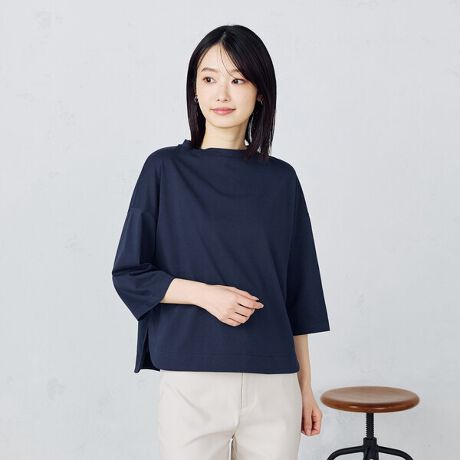 きれいな表面の素材感を活かし、シンプルな使いやすいデザインカットソー。