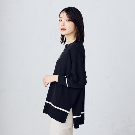 裾と袖に入った配色ラインがポイントです。