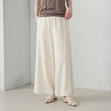 ナチュラルで優しい、爽やかなベーカータイプのワイドパンツです。