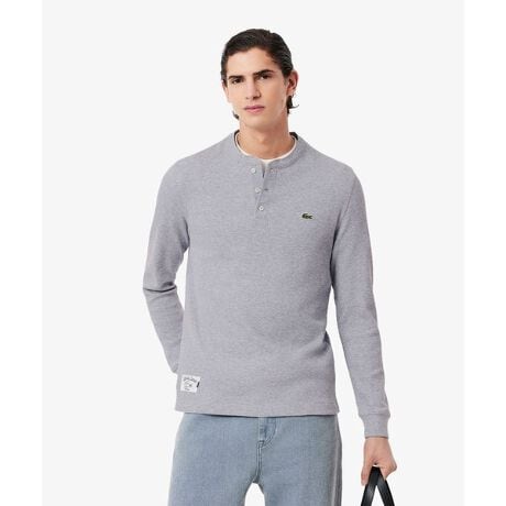 [型番:TH0035-10]タイムレスで着回せるヘンリーネックワッフルTシャツ・コットン?ポリエステルのストレッチワッフルニット・クラシックなヘンリーネックデザイン・ラコステならではのエレガンスを演出するマザー・オブ・パールボタン