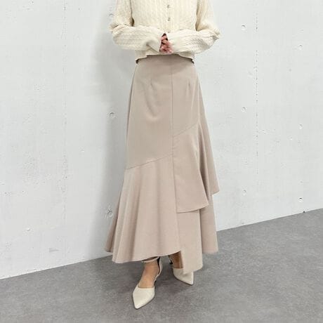 アシンメトリーで裾デザインの長さが場所によって違うので低身長の方でも履きやすい作りです。