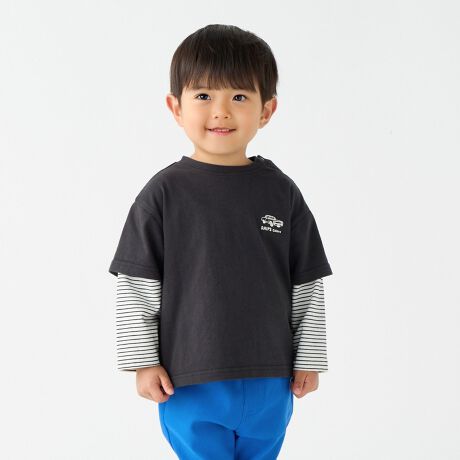 1枚で半袖Tシャツと長袖Tシャツをレイヤードしたスタイルが完成するトップス。