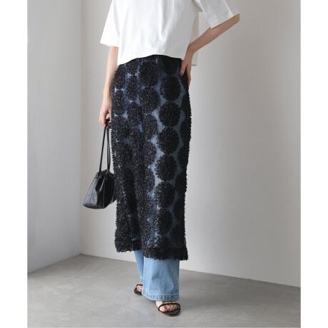 エンブロイダリーレースの華やかな素材感がコーデに映える、大人可愛いスカート。