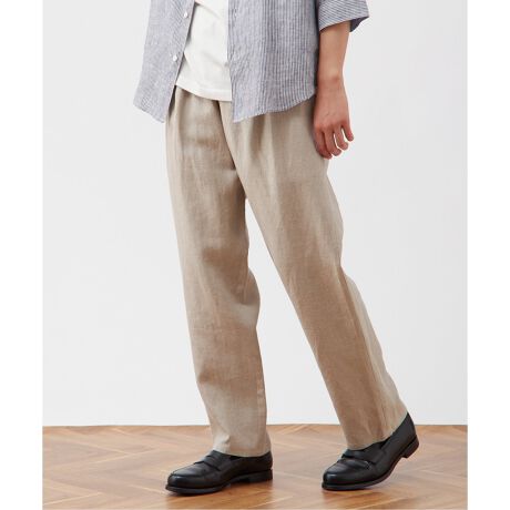 フレンチリネンを使用したイージーパンツは、ストレスフリーな着用感。