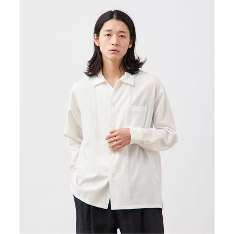 リネンレーヨン素材を使用したフレンチフロント レギュラーカラーシャツ。