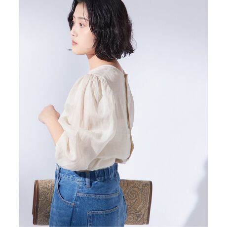 ラミー100%の素材を使用し、前後2WAYで着用出来るブラウス。