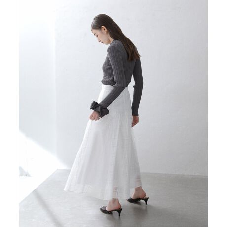 シアー素材はチェック柄が足元に程よく透け、軽やかで透明感のあるスタイルへ導いてくれます。