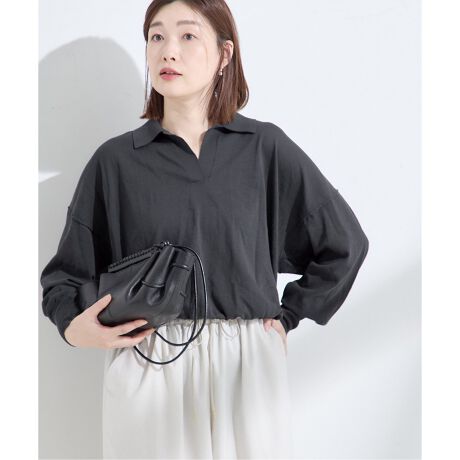 ゆったりとしたサイズが身体のラインを拾いにくく、ネックの開きがすっきりした印象に仕上げてくれます。