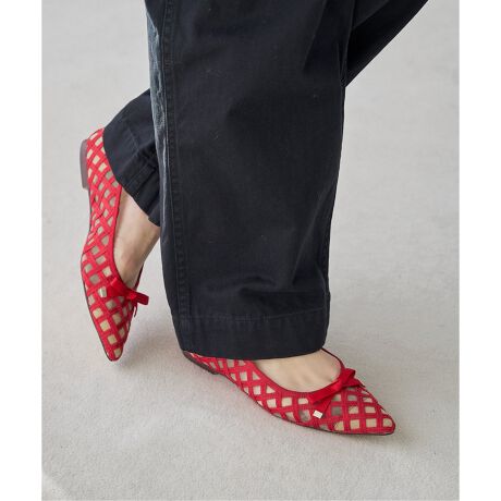 シンプルに履けるブラックやベージュに加え、フラットならではのキャッチーなレッドはデニムなどのカジュアルなボトムスに合わせて履くのが今年の気分。