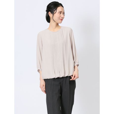 消しプリーツ 7分袖プルオーバーブラウス