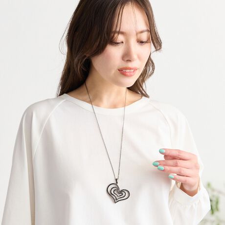 チェーンもブラックなので、大胆なハートも甘くなりすぎず、スタイリッシュな一本。