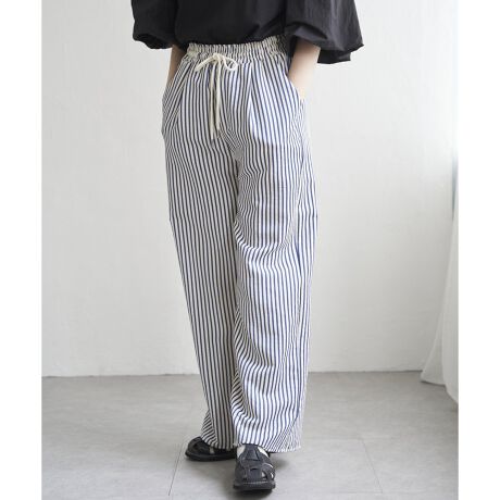 無地とストライプ柄の2バリエーションで展開するワイドシルエットのイージーパンツ。