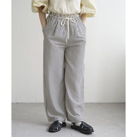 無地とストライプ柄の2バリエーションで展開するワイドシルエットのイージーパンツ。