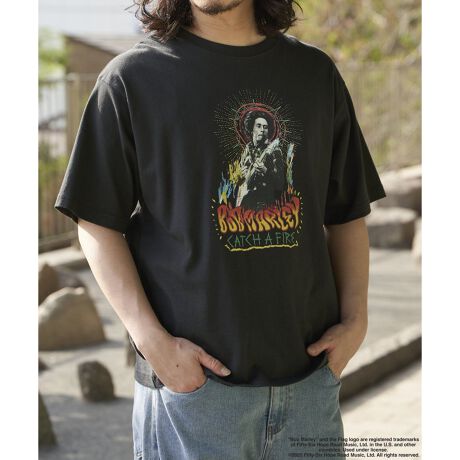 ボブ・マーリーの名作アルバム『CATCH A FIRE』をイメージしたフォトプリントTシャツ。