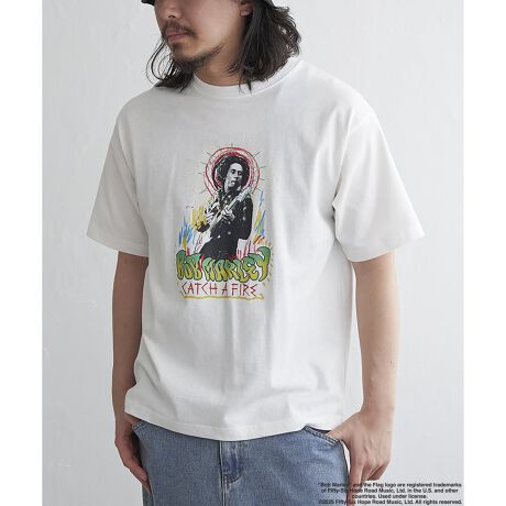 ボブ・マーリーの名作アルバム『CATCH A FIRE』をイメージしたフォトプリントTシャツ。