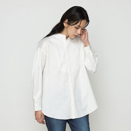フロントの切り替えでシャツらしい、きちんと感をプラスします。